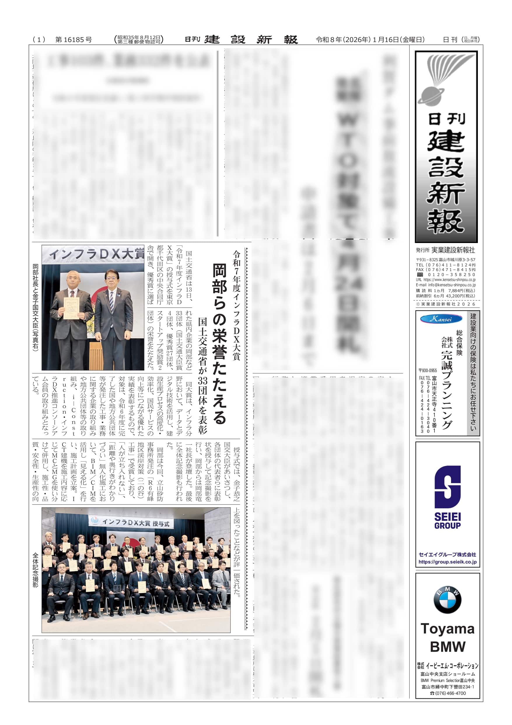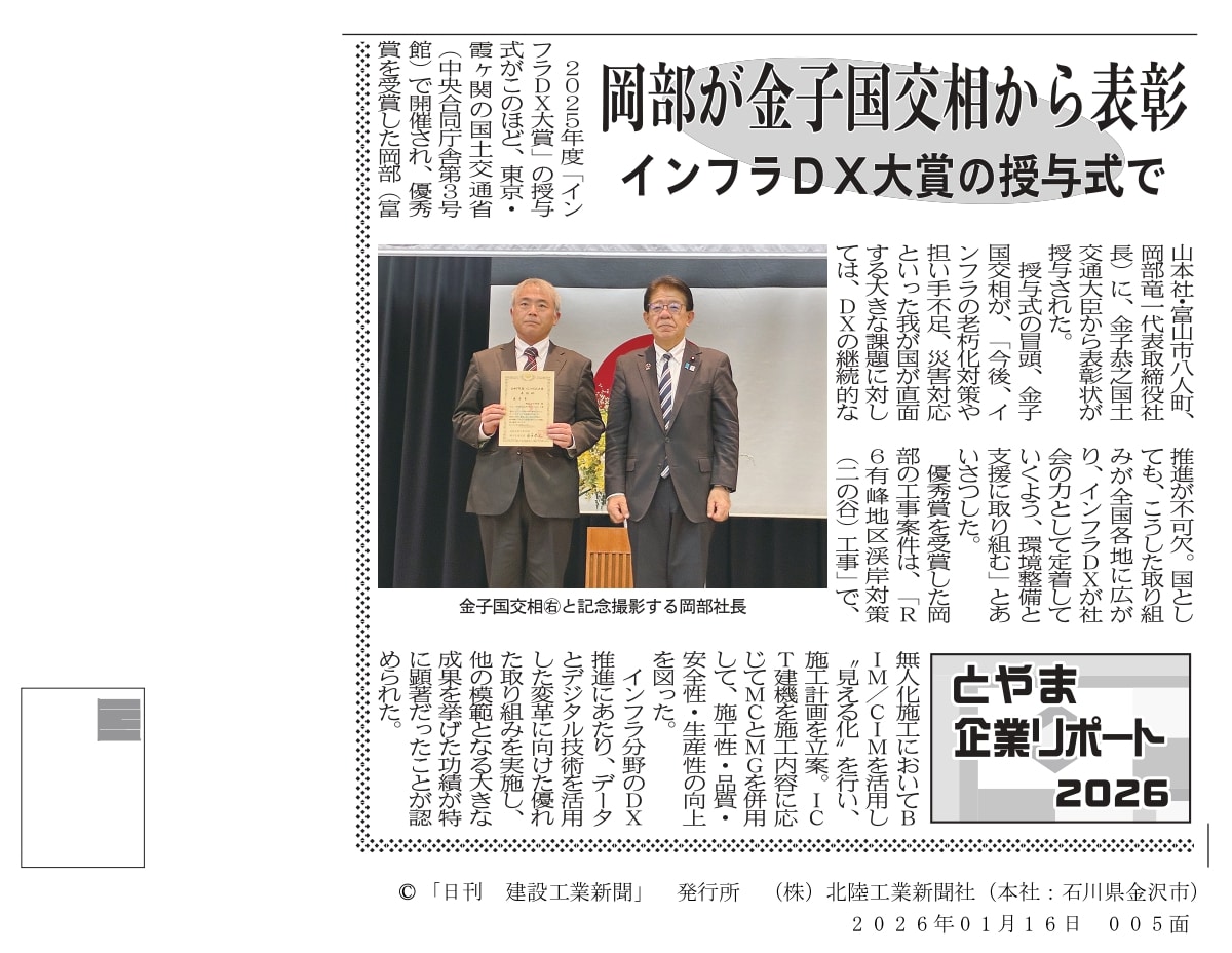 先日行われた授与式の様子が、日刊建設新報、日刊建設工業新聞に掲載されております。