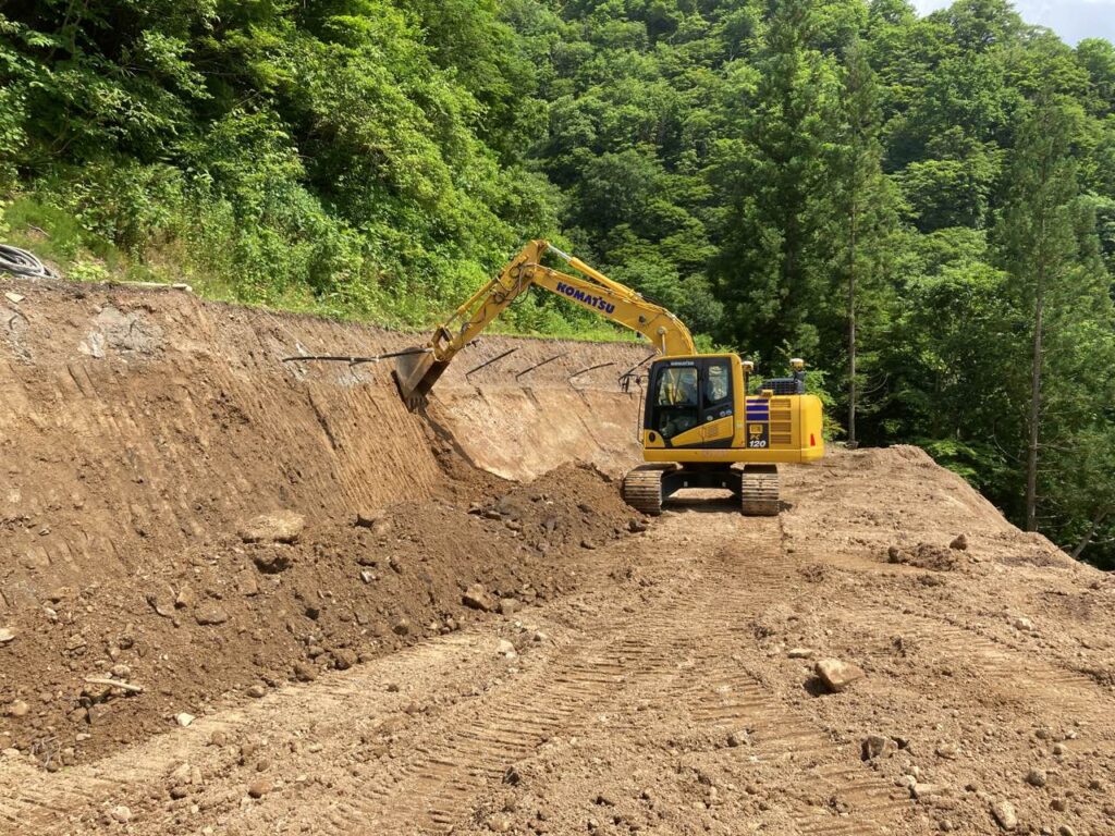 工事概要:本工事は、南砺市利賀村地内における林道下山線の進入路を造成する工事です