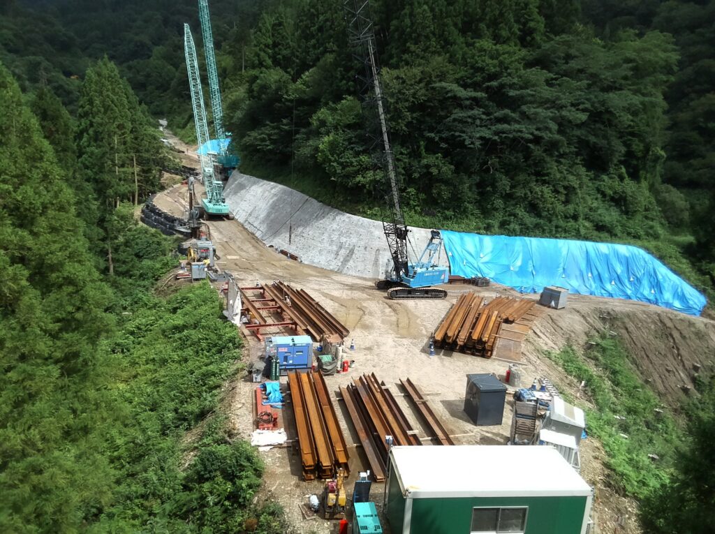 法面の崩壊が起こるほどの斜面での作業になりますので、気象情報をこまめに確認し、無事故無災害で完工を目指します。