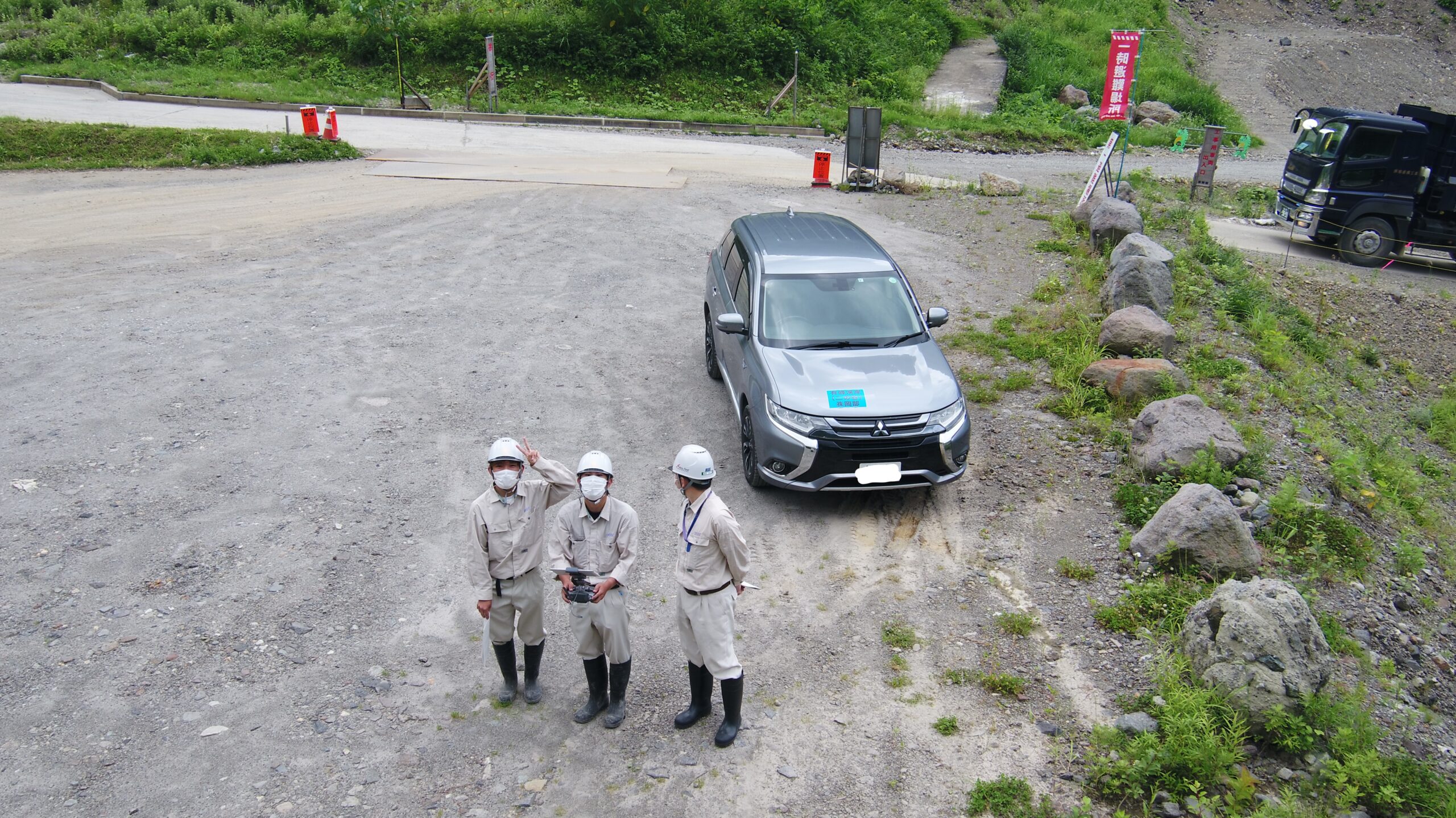 最近の建設工事ではICT施工(情報化施工)が一般化し、UAV測量(ドローン)飛ばして地形の形状を把握し施工に活用することが一般的に行われています。