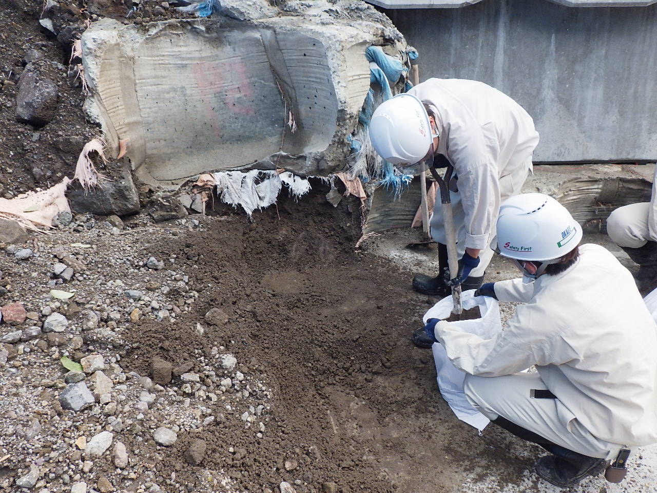 人力での土のう製作や足場の解体の手伝い等を実施しています。