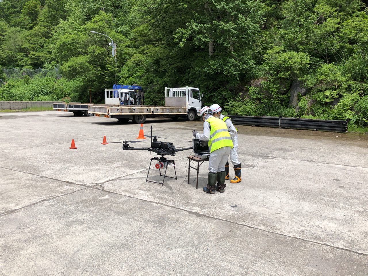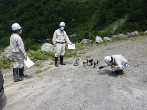 施工状況等の航空写真を撮ったりし、現地把握等に役立てているICT技術です。