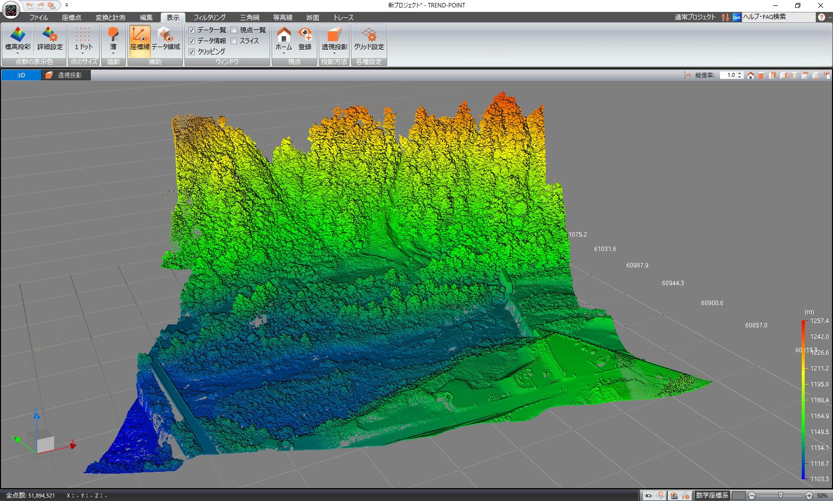 立木があっても葉っぱの隙間の空間を読み取り地形データを計測します。