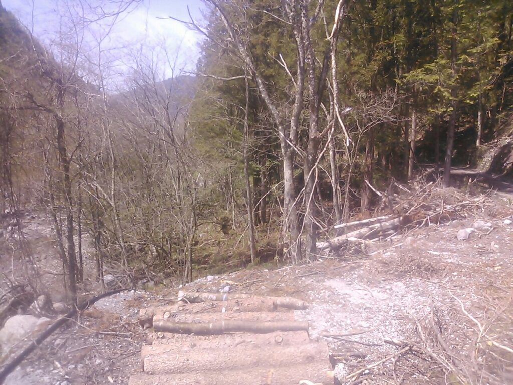 ・崩壊している斜面の上部に工事用道路・ヤードができました