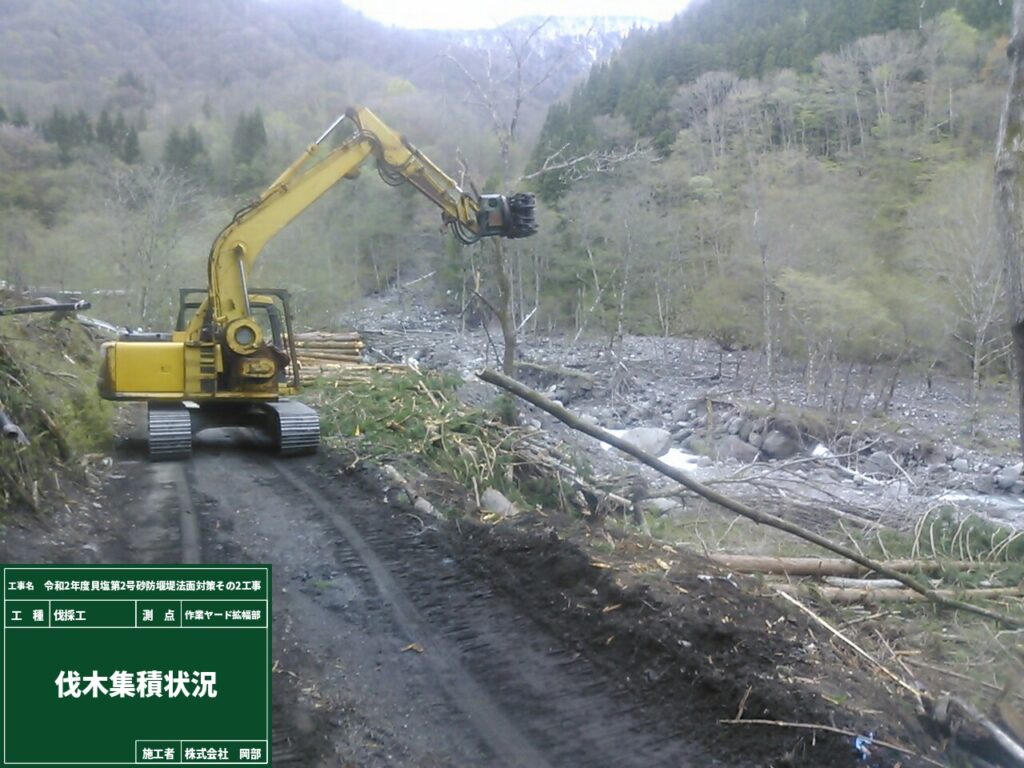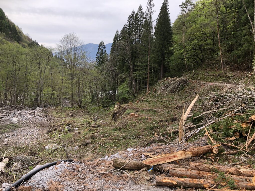 不動祭りが終わり、現場では工事用道路・作業ヤード造成のため、立木伐採を行っています。