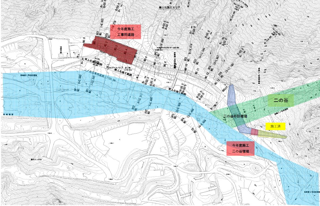 2カ所に分かれて二の谷の右側からと左側から施工を行います。