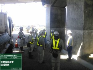 現場の進捗状況は、橋脚の柱のコンクリート打設が終わり、梁部の鉄筋組立、型枠組立作業を行っています。