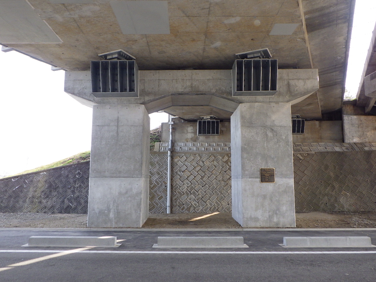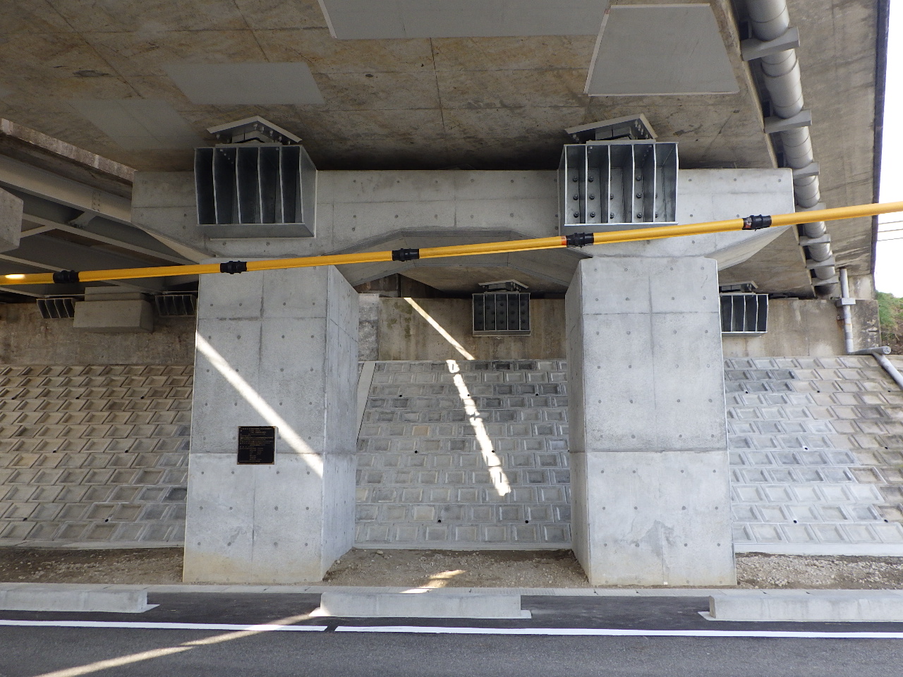 着工前と完成後で比べてみると、橋脚が太くなっているのと鋼材が取付けられているため、見た目からも強度が増しているのが伝わってきます。