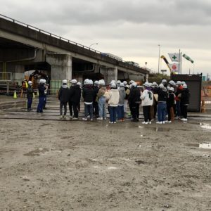 修学旅行の一環だそうですが、今回は建設現場におけるICT技術の紹介を踏まえ見てもらいました。