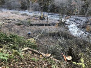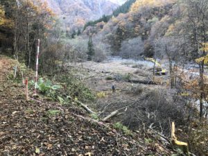 まず、前回の投稿で、立木ぼ伐採・集積を紹介したかと思いますが、その部分に仮設の坂路を設置し、コンクリートブロックを運び込みました。