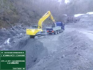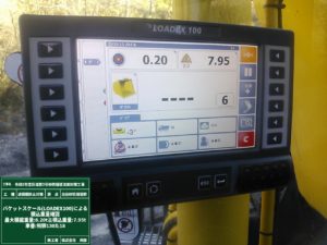 まず、安全対策として【LOADEX 100】という、測量機器メーカーのTOPCON社が出しているバケットスケールを使用して土砂の積込を行い、過積載防止に取り組みました。