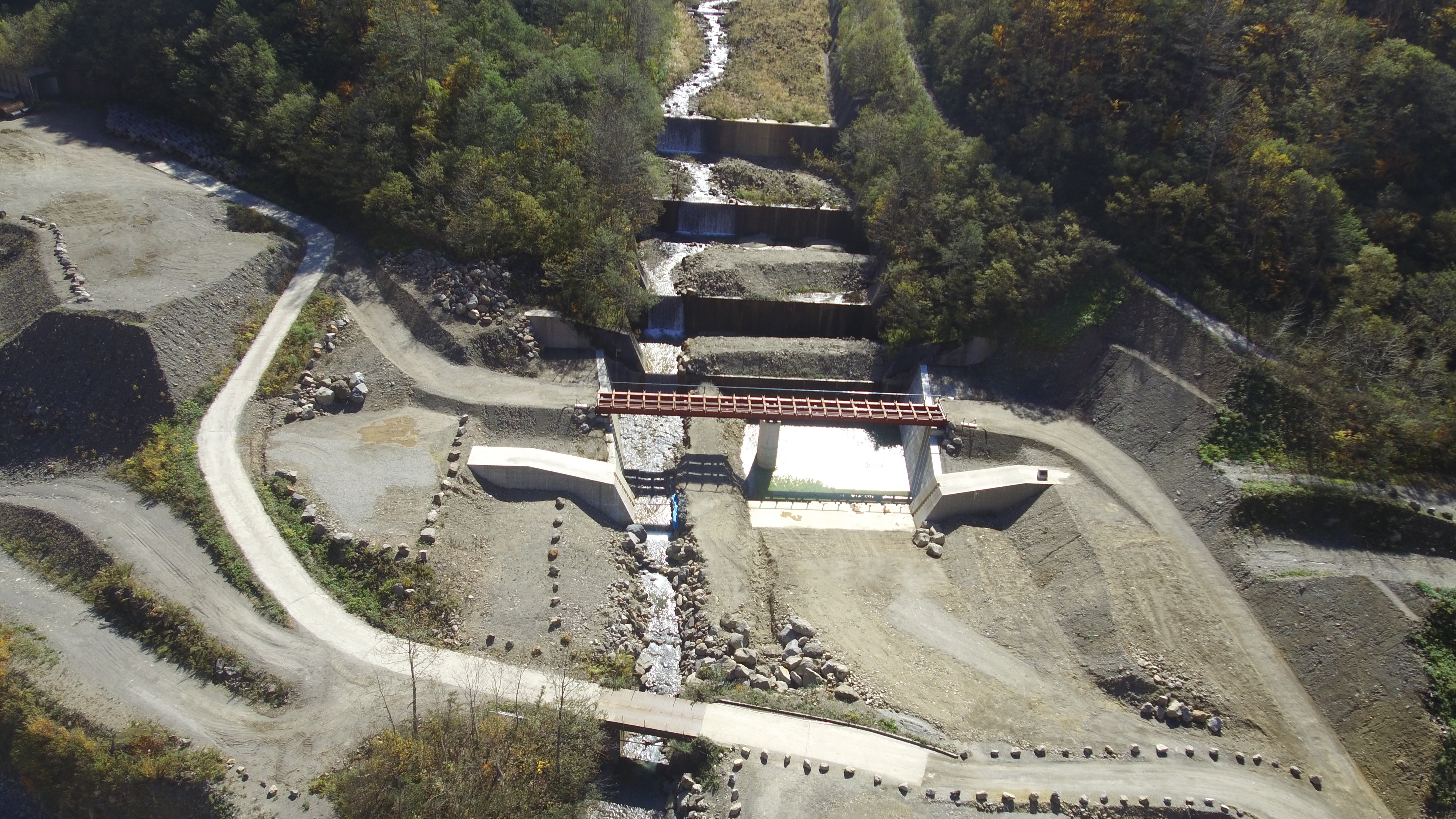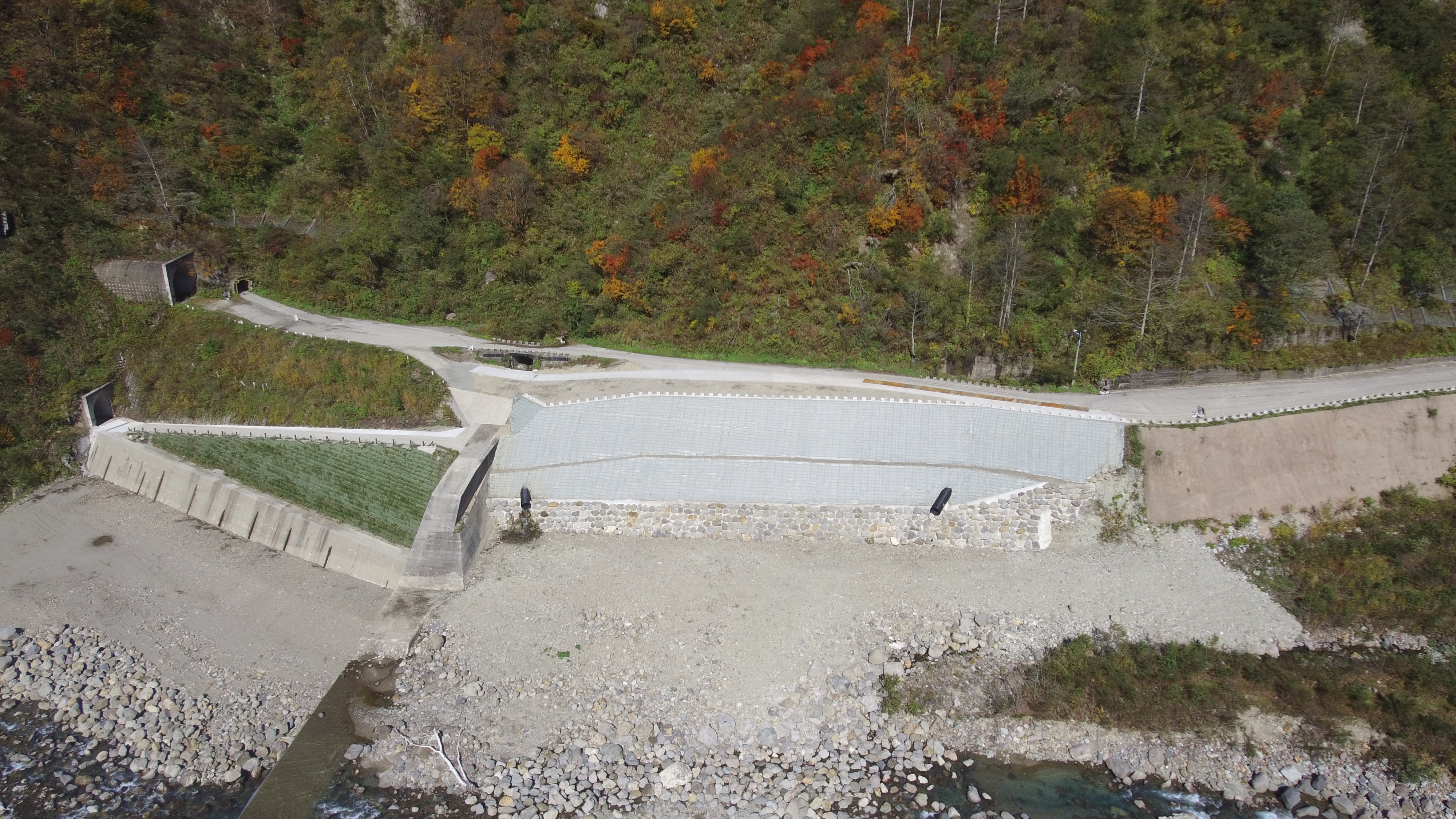 土木工事では立山砂防で「H30 有峰地区渓岸対策及び工事用道路工事」を施工しました。この工事では工事用道路の拡幅と仮設鋼橋の設置等を行いました。