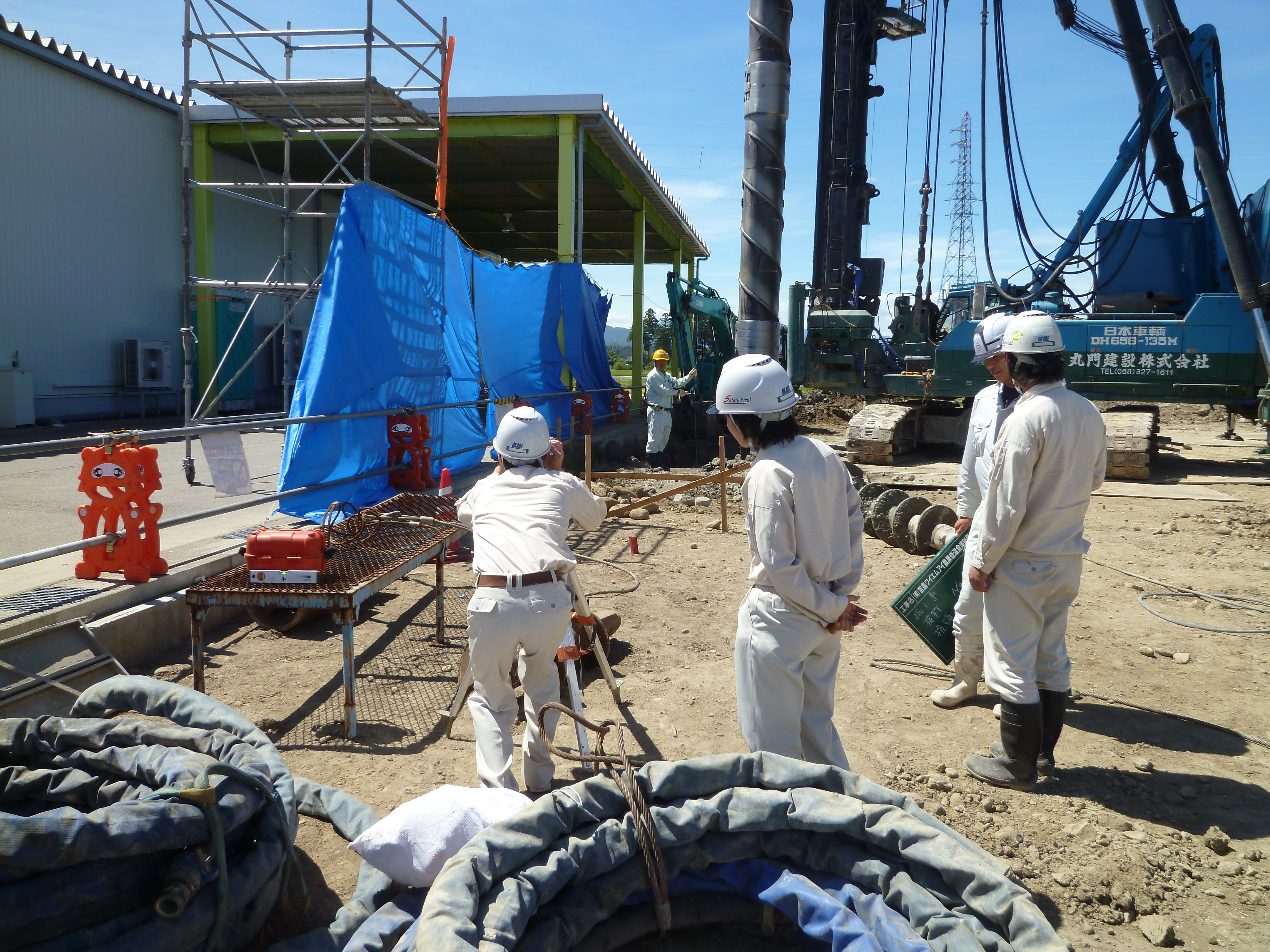 この現場には入社6年目と2年目の若手技術者が業務にあたっています。特に入社6年目の者は現場代理人を務めています。
