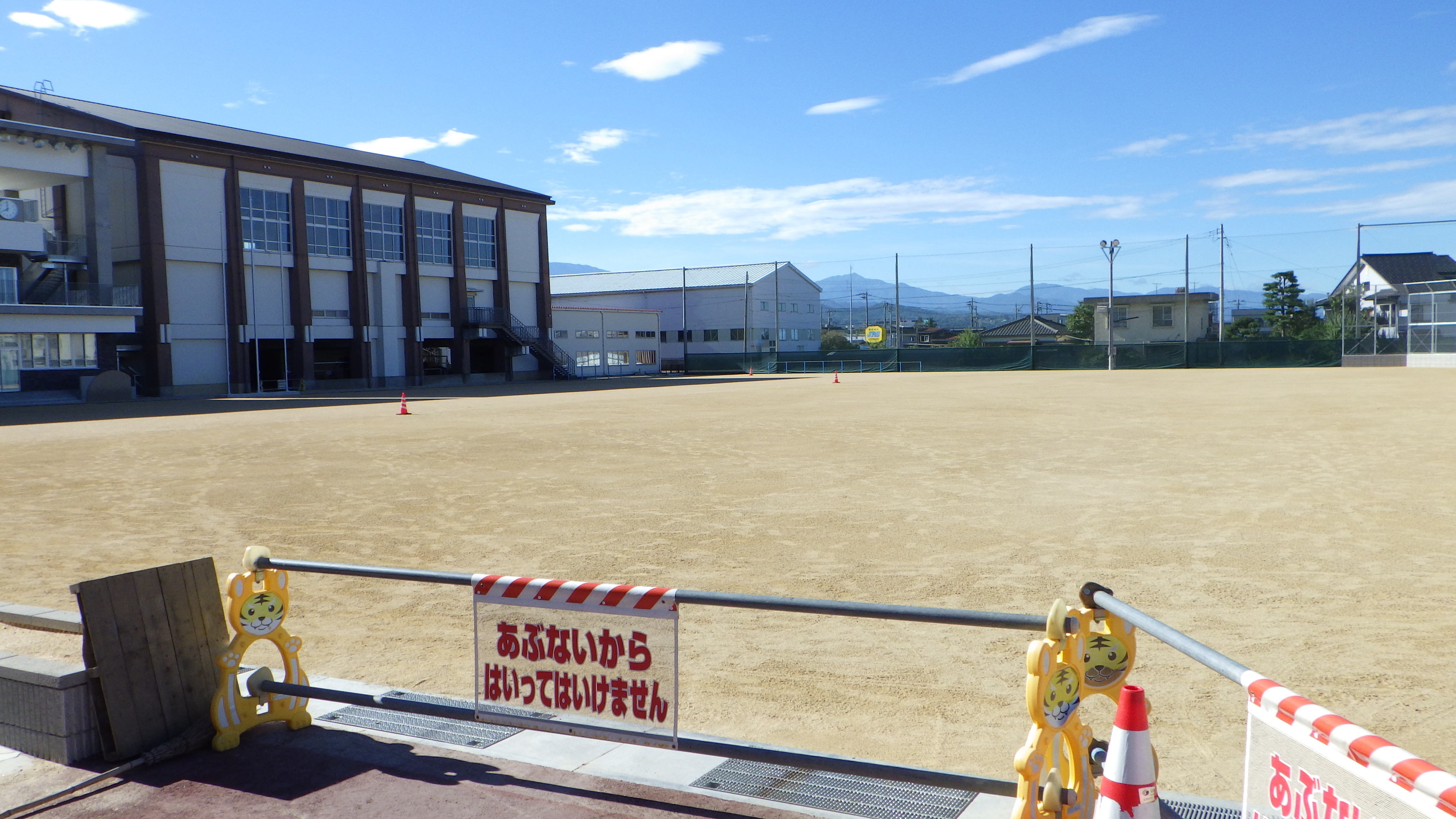 この小学校のグラウンドの周囲には住宅や商業施設があり、周辺に土埃が飛散されにくいという点もATTAC工法のグラウンドの特長です。