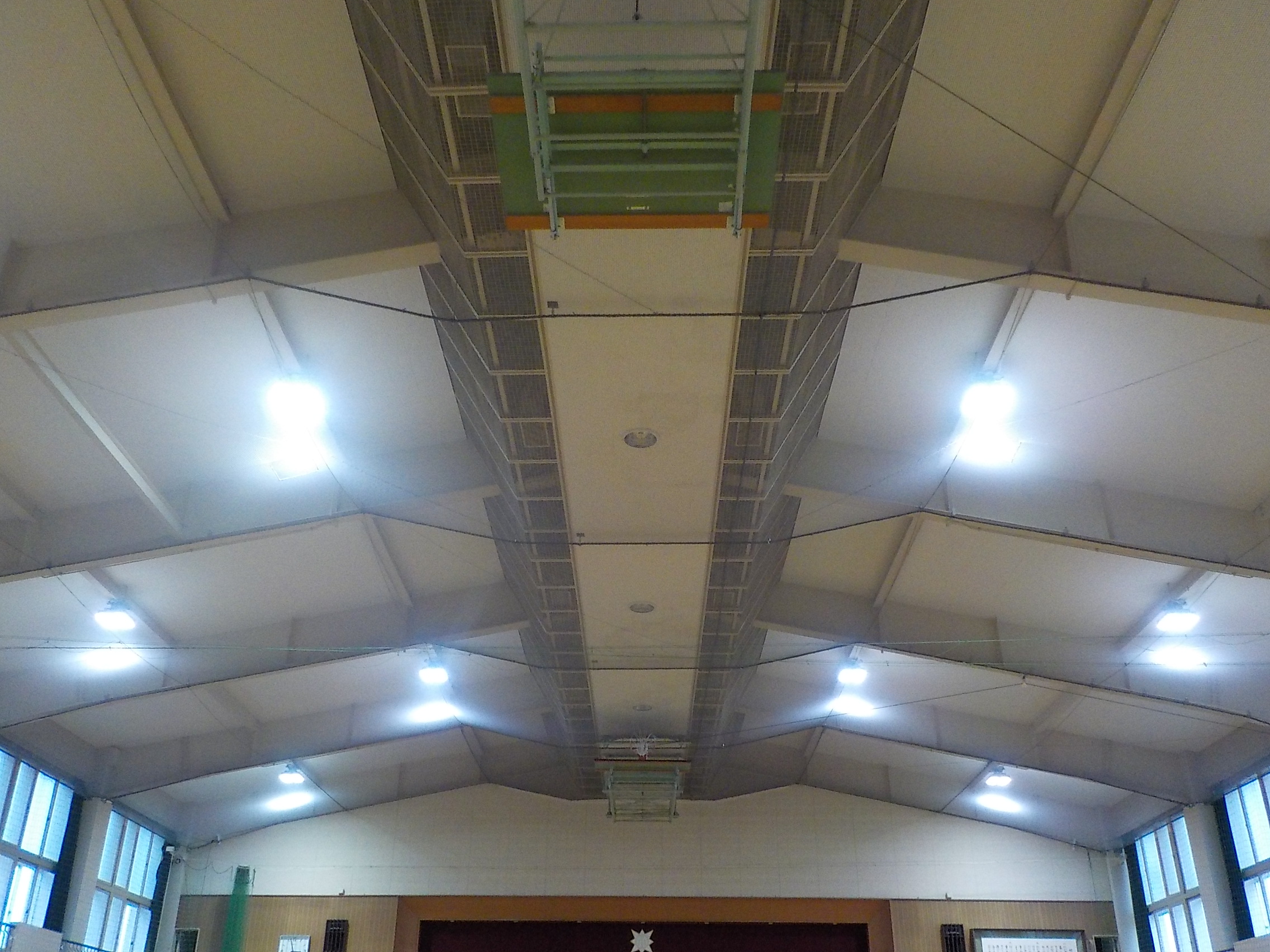 上の写真は当社が小学校の体育館でNet-One工法を施工したものです。
