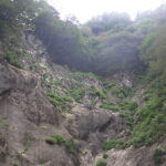 わかりづらいですが、法面上のメロンの皺のような跡が今回の構造物となります。
