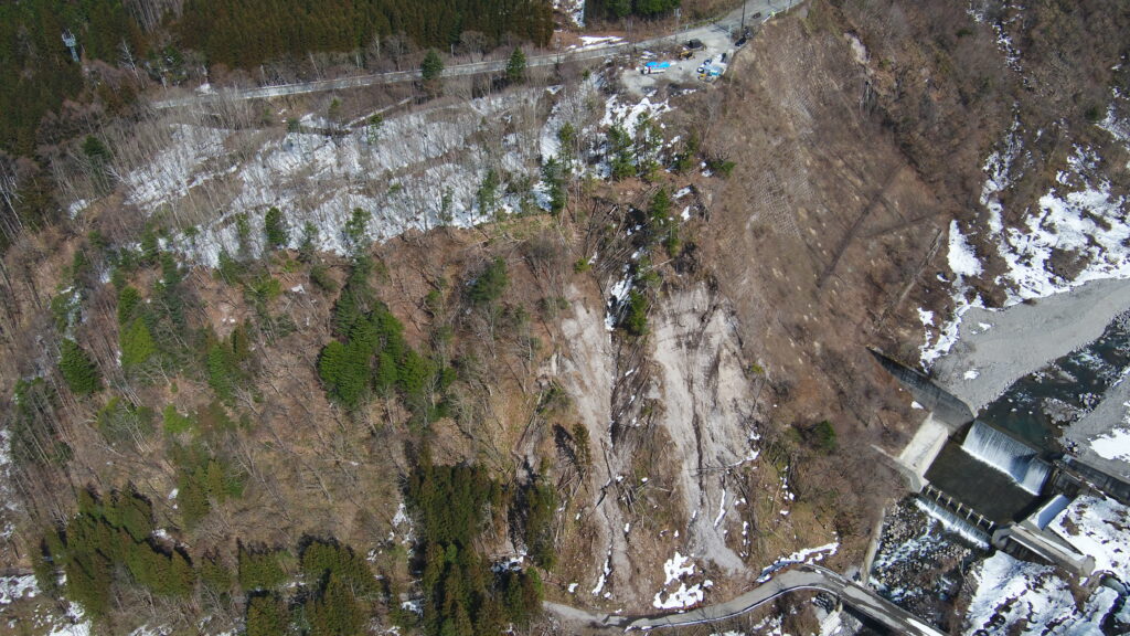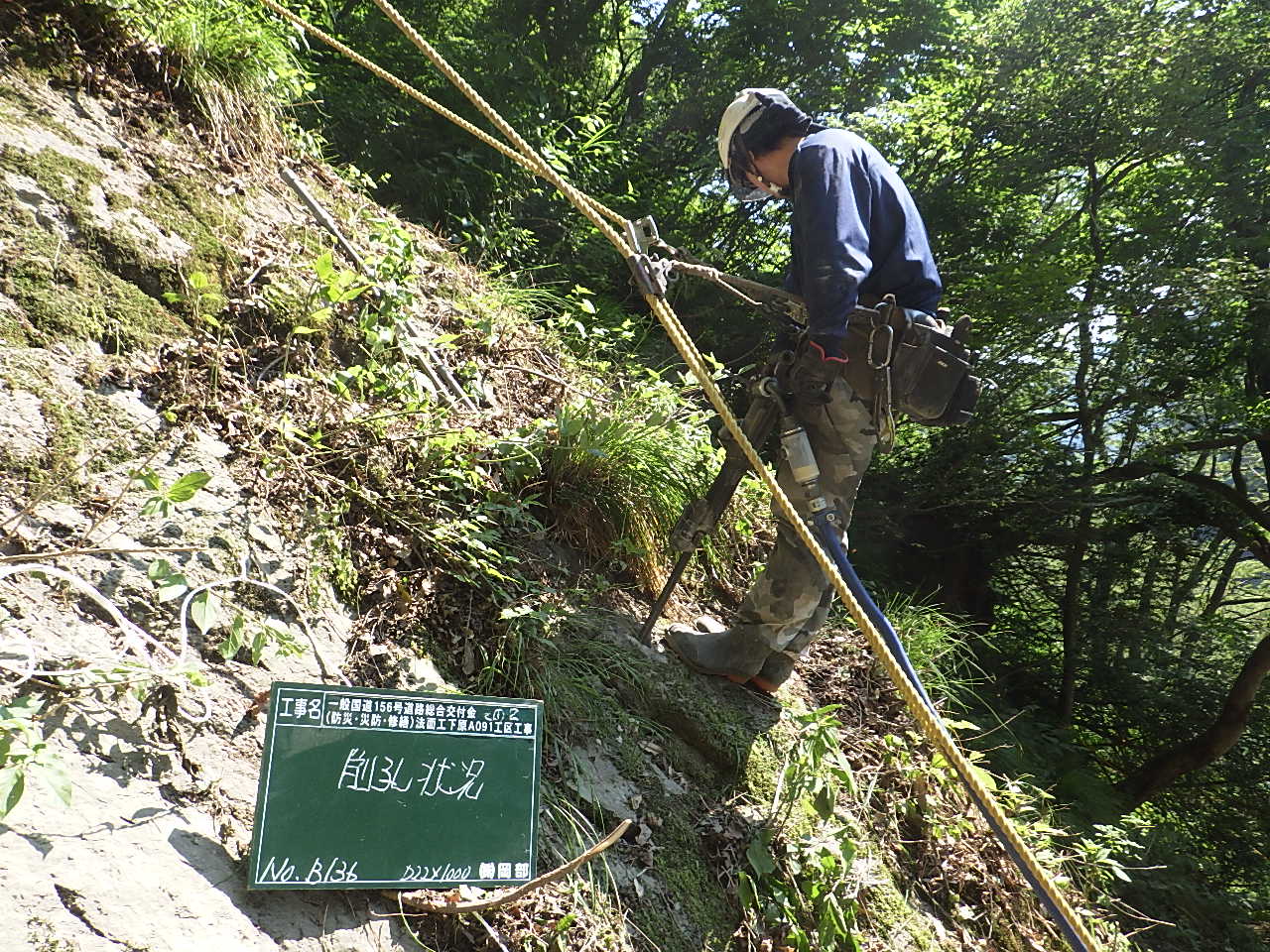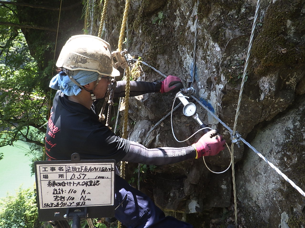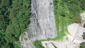 斜面整理工683m2、ロープ設置工3,000m、岩盤用アンカー258本、自穿孔アンカー10本