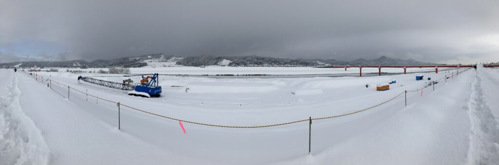 現場はかなり先が見えてきましたが、最近は冷え込みが一段と厳しきなってきており、構造物の品質管理や安全管理など気を抜けない状況が続いております。