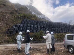 法面の崩壊が起こるほどの斜面での作業になりますので、気象情報をこまめに確認し、無事故無災害で完工を目指します。