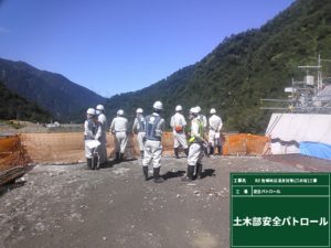 若手を中心に参加者11名で、現場をパトロールし、安全管理状況や書類の整備状況、現場の創意工夫、立山砂防での生活状況などを見て回り確認してもらいました。