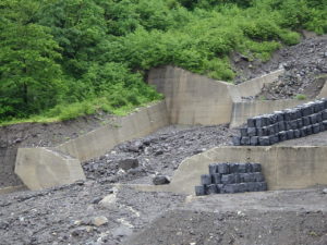 二の谷の現場では、無人化施工の他にコンクリート堰堤工の施工も行っています。