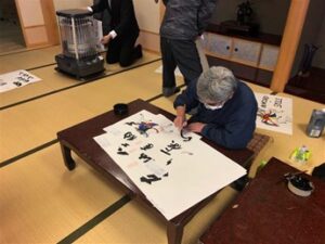 先日、本工事の施工箇所である「奥飛騨温泉郷一重ケ根地区」の地元行事である『不動祭り』に参加し、紙絵馬を書いてもらいました。