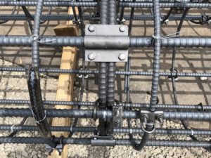 杭の中に入れる鉄筋ですが最近は、無溶接工法が標準となっているので鉄筋同士は右側の金具で連結しています。
