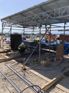 準備として鉄板を敷いて清掃してピカピカになりました。天気が良いと気持ちがいいし、作業がスムーズです。