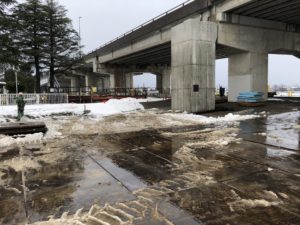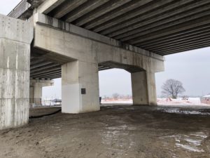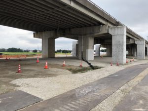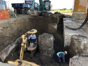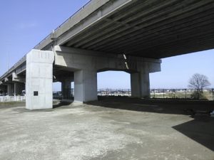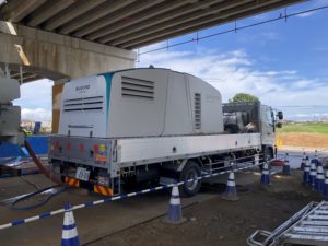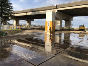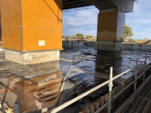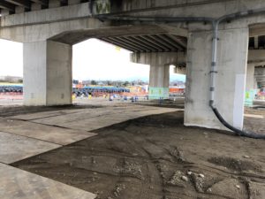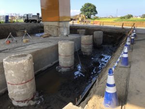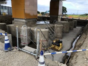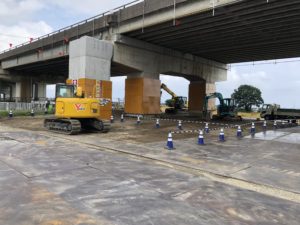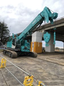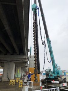 現在も場所打ち杭の施工を継続中ですが、施工場所は橋梁の下なので