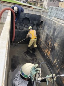 コンクリートが乾燥しないよう、急激な温度変化がないよう湿潤状態にしてあります。