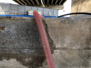 水路と埋設管(水道管&工業用水)の間の60cm程度の隙間に打設する必要があります。
