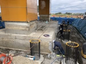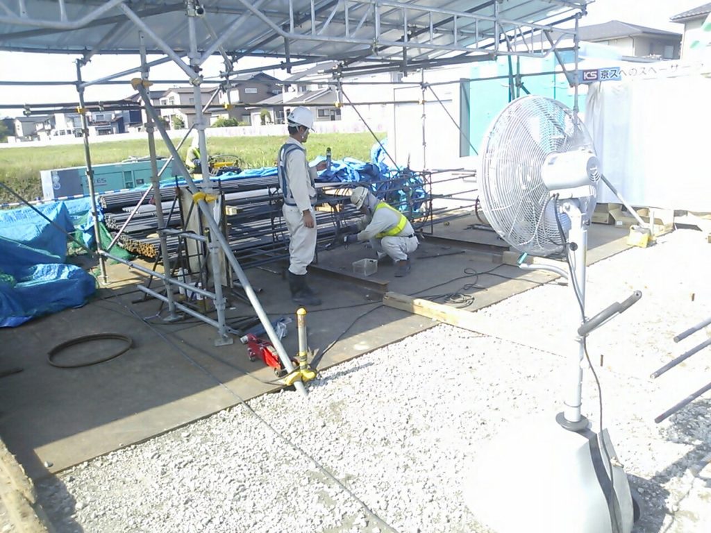 中でも鉄筋同士を接合する「継手」の真っ最中です。