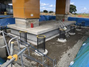橋脚工事は終盤に差し掛かり現在は、鉄筋工事をおこなっています。