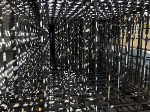 写真と打設準備などに備えて鉄筋の中に入ってきたときに不思議な空間が広がっていたので一枚撮ってみました。