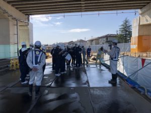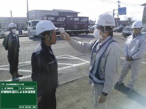 現在、大問題となっている新型コロナウイルスについてですが、当現場でも会社からの指導により朝礼時に全員の検温等を実施しています。