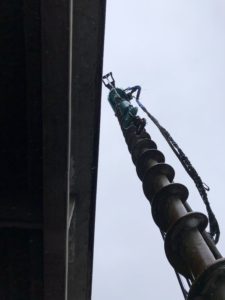 これは建込み途中ですが、引っかけている鋼管のことを”かんざし”と言います。