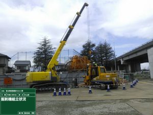 現場の方は、基礎杭のプラントを設置したり、機械を組立てたりしています。