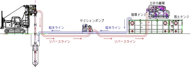 これは、安定液により掘削の壁を保護しながら安定液を循環させ掘削した土砂を排出する工法です。