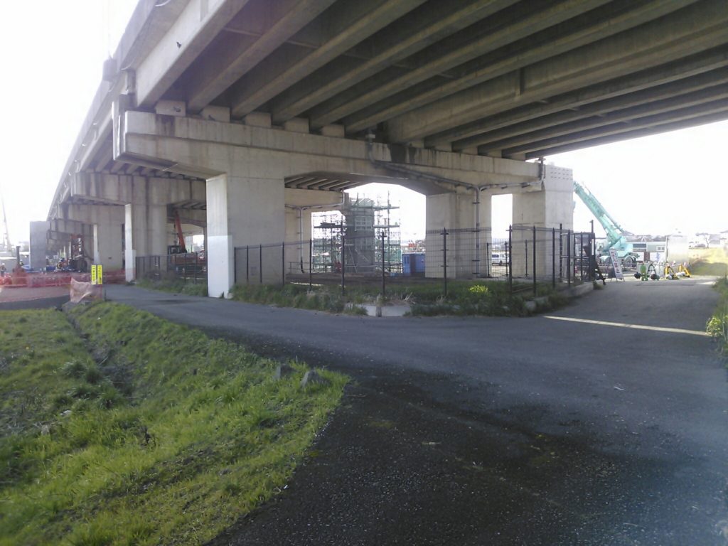主な工事内容は、土工・場所打ち杭工・橋脚躯体工であり、場所打ち杭工に関しましては、1本約57mと大変深い杭の施工となり当該工事のメイン工種となります。